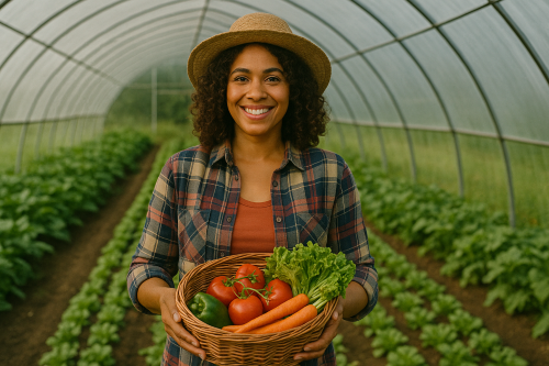 Farmers sharing land, fresh produce, and sustainability wisdom